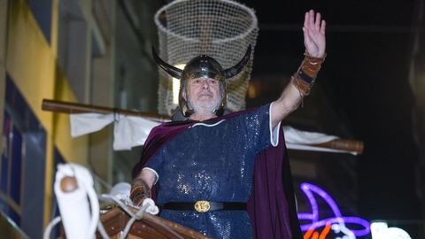 El emblema del carnaval pontevedrés, el que en su día fue un presagio de muerte y que en 1876 se reconvirtió por obra y gracia de un grupo de pontevedreses, entre los que se encontraban los poetas Andrés Muruais, Renato Ulloa y Rogelio Lois o el músico Prudencio Piñeiro, en el monarca que anuncia la buena nueva del entroido, desembarcó acompañado por las comparsas Os Retrincos, Os Miúdos, Amigos dos Rapaces y Flores de Carnaval. Con la recepción del alcalde se podría decir que se dio el pistoletazo de salida al que muchos no dudan en definir como el mejor entroido urbano de Galicia.