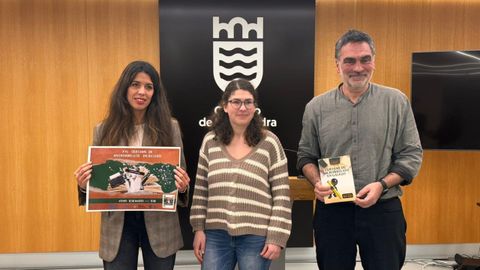 12 de marzo • 17.30 horas • O edil de Normalización Lingüística, Demetrio Gómez, acompañado de María Fernández González, directora da Escola Oficial de Idiomas de Pontevedra, e de Elma Barreiro Abad, secretaria da EOI e membro do EDLG, presentou a vindeira edición do Certame de Microrrelato en Galego que se desenvolverá de xeito presencial nas de dependencias de EOI de Pontevedra, Lalín e IES Valle Inclán. Elma Barreiro precisou que está dirixido a persoas maiores de 14 anos, alumnas ou non da EOI, e do que xa se poden consultar as bases: «Serán coma sempre tres palabras como punto de partida e 110 minutos, con 150 palabras de extensión máxima. Ao longo da semana iremos descubrindo que persoas escolleron as palabras desta edición. Persoas de ámbitos moi distintos co amor pola lingua como fío común. Cada dous anos, recompilamos nunha publicación os relatos gañadores».