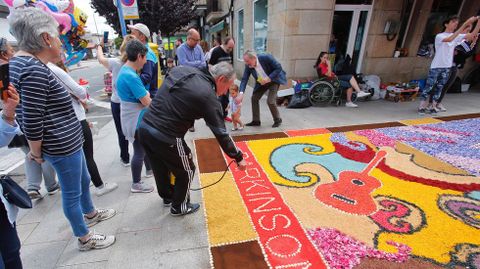 El centro urbano de Bueu se engalanó ayer con más de cincuenta alfombras con motivo del Corpus. Los vecinos volvieron a diseñar espectaculares diseños en la calle, con especial atención a los motivos relacionados con la música,