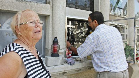 «Matouno a traizón, ¿sabes? De cara non houbera tido huevos a ir por meu fillo. Era delgado pero estaba forte, era subcampeón galego de karate, cinturón negro», cuenta Elena mientras su hijo sella las grietas del nicho y pasa un trapo al cristal que protege el rectángulo. «Era unha persoa feliz. Tiña moitas cousas. Moza, un bo coche, traballo, andaba sempre cantando...».