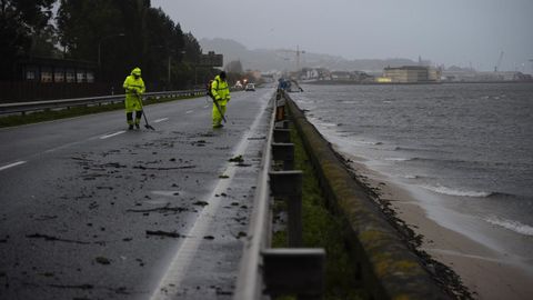 Las fuertes olas anegaron de madrugada los cuatro carriles de circulación de la PO-11, que ya se ha reabierto al tráfico