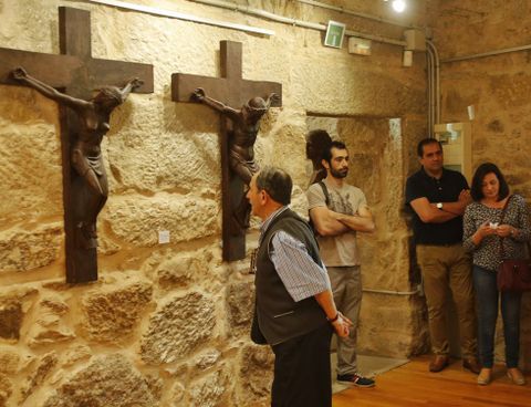 19 jun 2016 . Actualizado a las 05:00 h.Como viene siendo tradicional, la inauguración de la muestra de la Escola de Canteiros de Poio en el Casal de Ferreirós fue ayer el pistoletazo de salida de las Festas de San Xoán. En esta ocasión, la cita estuvo acompañada por la sorpresa que causó entre los asistentes un conjunto de dos piezas titulado Hombre-Mujer y consistente en la imagen de un hombre y una mujer crucificados como Jesucristo y con el torso desnudo.