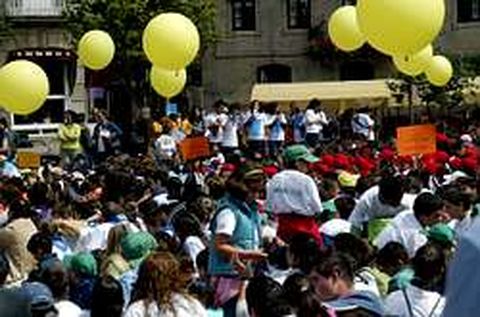 16 may 2007 . Actualizado a las 07:00 h.A praza da Ferrería foi onte punto de encontro para perto de 2.000 escolares dunha trintena de centros de infantil, primaria, secundaria e educación especial de Bueu, Marín, Meis, Poio, Ponte Caldelas, Ribadumia, Cangas, Soutomaior e Pontevedra que participaron na nova edición de Correlingua, a carreira pola normalización lingüística. Baixo o lema de Galegando, os rapaces percorreron andando boa parte do centro histórico, partindo da rúa San Román e voltando a Ferrería pola Michelena. Galegando é un verbo inventando como xeito de fomentar a creatividade e imaxinación dos nenos ao traballar nas aulas sobre o correlingua. A Ferrería encheuse de nomes galegos, que os nenos portaban nas costas e no peito, desde animais e peixes, a froitos e árbores: acedías, cazón, pións, muxo, golfiño, balea, abeña, gaivota, cebola, figo, calacú, laranxa, castiñeiro, figueira, pero tamén bulir, escoitar, arranxar, acougar, beizos... e unha morea de verbas. Tamén figuraban lemas como lamber non é comer, cómame o demo, deixa chover, algo de porco tiña o fáltame unha fervura, entre outros. Algúns centros portaban pancartas, como a do IES A Xunqueira 1 que rezaba Deixa pasar o galego, Galegando pola cidade, da Xunqueira 1 ou Ninguén nos cala, do IES Salvador Moreno de Marín. Tampouco faltaron frases a prol do galego: En galego mellor, fala e escribe en galego, sempre en galego... e ata algunha frase de Castelao, «Non esquezamos que se aínda somos galegos é por obra e gracia do idioma». Nesta festa o alcalde Fernández Lores animou aos rapaces a utilizar o noso idioma todos os días do ano, e dous nenos leron o manifesto deste ano, Galegando, no mesmo sentido. Como estrela invitada participou o popular porco bravo Xabarín da TVG coa súa inseparable Xababanda, que fixeron bailar aos asistentes. E ao remate, na derradeira canción, soltáronse globos xigantes co nome dos centros participantes, que a modo de metáfora, espallaron o galego polo ceo. Pero antes de rematar, a concelleira María Xesús López Escudeiro, Xacobe Rodríguez, da organización do Correlingua, Manuel Barreiro, de Ciga Ensino, Iria Fernández, da Mesa pola Normalización, e Roberto Rivas, da Asociación Socio Pedagóxica Galega, repartiron lotes de libros entre os centros afortunados, que foi sacando dun sobre un neno de 5 anos, Rubén, do CRA de Meis, quen por certo, deulle sorte ao seu colexio.