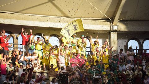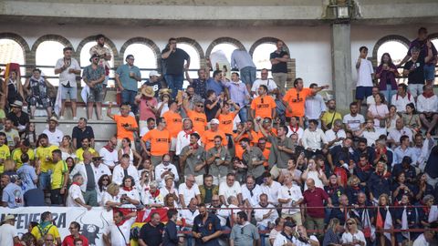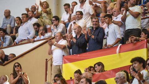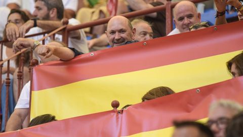 El ambiente en la plaza de San Roque, en esta tarde de agosto, reflejaba el peso que tienen las peñas en la afición taurina en la ciudad, con pancartas, pañuelos y camisetas con sus emblemas. El aforo estaba en torno a un 80 % y entre las personalidades que se dejaron ver por las gradas se encontraba el presidente de la Real Federación Española de Fútbol, Rafael Louzán.