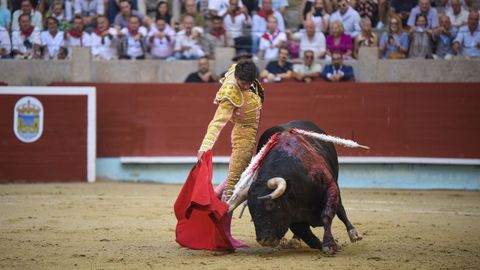 Por su parte, Emilio de Justo se enfrentó a Batutero, en una faena que dedicó a Javier Guillén, director de La Vuelta a España. Toreó con estilo y logró el aplauso del público en el coso de San Roque, pero lo que parecía una faena técnicamente perfecta y que le daría al menos una oreja se frustró al final, cuando al entrar a matar fue necesario ir al descabello.