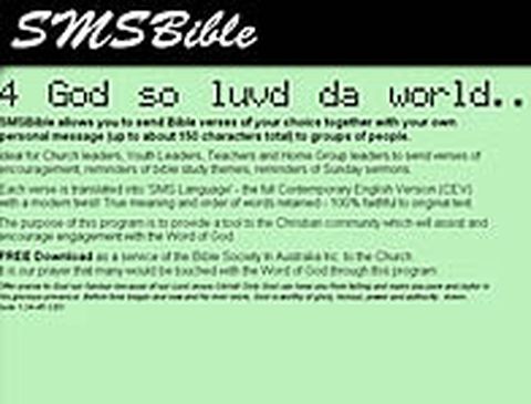 11 oct 2005 . Actualizado a las 07:00 h.La Sociedad Bíblica de Australia ha presentado una versión de la Biblia en formato SMS que permitirá leer los 31.173 versos del libro sagrado a través del teléfono móvil, según anunciaron fuentes de esa organización. «Se acabaron los viejos tiempos cuando la Biblia podía encontrase sólo con tapas oscuras y una cruz encima. Queremos abrirla a gente de todas las edades, procedencias e intereses y la versión en SMS es una extensión lógica de esto», dijo el portavoz de la Sociedad, Michael Chant. Afirma que así acercará el libro a los jóvenes. La Sociedad ha reducido la ortografía de las palabras del texto para que cada versículo quepa en un mensaje. La nueva versión de la Biblia se encuentra en Internet con más de 30.000 mensajes que pueden ser adquiridos a bajo precio.