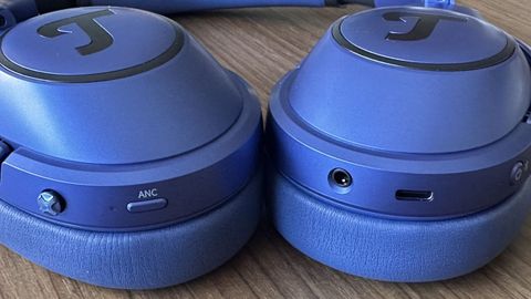 En mi caso, las copas cubrían perfectamente las orejas y únicamente eché de menos unos milímetros más de longitud de diadema, porque a veces me gusta colocarlos sin que toquen la coronilla. Manías que tiene uno... Pero vamos al lío: ¿cómo suenan y qué tal se manejan estos Teufel Real Blue NC? Empezando por lo último, los auriculares se distinguen de la competencia por disponer de un botón-joystick que permite realizar numerosas funciones: reproducir y pausar canciones, subir y bajar el volumen, pasar al siguiente tema o volver al anterior, iniciar el asistente de voz, gestionar llamadas (aceptar, finalizar y rechazar) y compartir la escucha con otros auriculares gracias a la función ShareMe. Se trata de un sistema que simplifica mucho la interacción con los cascos, porque es muy fácil encontrar el joystick (sobresale más que un botón normal) y no tenemos que andar buscando otros mandos a ciegas, pasando nuestro dedo por la superficie del auricular. De hecho, solo hay otros dos botones más, uno para encender/apagar el dispositivo y activar el emparejamiento Bluetooth, y otro para seleccionar el nivel de cancelación de ruido.