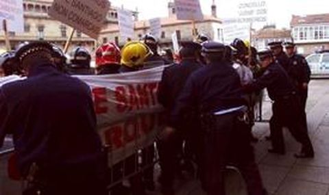 31 oct 2002 . Actualizado a las 06:00 h.A Los bomberos de Santiago retomaron ayer las manifestaciones en protesta por la creación del parque comarcal de bomberos. Lo hicieron a las seis de la tarde, en la praza do Obradoiro, y con la intención de acceder al pleno municipal ordinario que se celebró ayer en el Concello. El acceso al pazo de Raxoi estaba vallado y la policía local impidió que los bomberos entrarán en el consistorio para asistir al pleno. Aunque los funcionarios insistieron en que querían entrar como «ciudadanos», los agentes tenían orden de no permitirles el paso. El portavoz de los bomberos de Santiago insistió en que las reivindicaciones no son económicas, sino que se centran en la negativa de los «funcionarios de Santiago» a realizar su trabajo fuera del municipio. Los bomberos recordaron que enviaron por registro cuatro escritos a Carlos Nieves, concejal de Personal, en el que quedan claras las reivindicaciones, «si no las quiere entender será que es analfabeto». Los bomberos explicaron que el personal establecido para el parque comarcal de bomberos es el que se reclama sólo para Santiago, por lo que consideran que la ampliación prevista tampoco solventará los problemas actuales del parque municipal. En la actualidad hay 52 efectivos en el parque municipal, pero con seis bajas. Cuando el parque comarcal esté funcionando, la previsión es de 75 agentes, además de un incremento de material. Los bomberos recordaron que, según el convenio entre Concello, Diputación y Xunta, cuando llegue el material tendrán que salir a la comarca para «cualquier asunto». En el momento en que ésto se produzca, los bomberos pedirán la «suspensión cautelar» del parque hasta que se resuelva el contencioso-administrativo. El concejal de Personal, Carlos Nieves, dijo que los bomberos pretenden paralizar el parque comarcal, pero «eso no puede ser», porque hay un convenio firmado y un acuerdo de varias administraciones. Nieves insistió en que «no se lo que quieren». Dositeo Rodríguez, portavoz del PP, dijo que el gobierno local debería iniciar una negociación sindical con los trabajadores e intentar un acuerdo que permita la modificación del convenio con el fin de que los funcionarios pueden salir de Santiago. Como vicepresidente de la Diputación dijo que si el personal previsto no es suficiente, esta institución estaría dispuesta a estudiar la ampliación.
