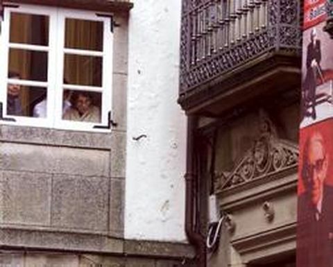 Foi unha visita puntual e curta a que onte fixeron os Reis a Compostela para inaugurar a Fundación Torrente Ballester, situada ó pé da catedral, no número sete da Rúa do Vilar, no mesmo edificio polo que hai anos se desfilaba para pagarlle a Facenda. Viñeron só para asistir á sinxela cerimonia, na que só os privilexiados escoitaron algunha palabra das súas Maxestades, porque nin sequera traían disposto un discurso. E a chorimiqueira mañá non permitiu que os poucos composteláns que puideron achegarse ó estreito cercado fixado polos encargados da seguridade apreciaran a calidez humana da que fan gala tantas veces don Juan Carlos e dona Sofía. A Rúa do Vilar estaba cortada rebasado o cruce da Travesa do Franco. E tampouco puideron escoitar ós poucos concentrados que lembraron que o problema do Prestige segue aí e berraron con forza Nunca máis ; nin ver á unha espilida comerciante vestida de negro e cunha banda azul cruzándolle o peito como sinal de mágoa e de reivindicación.Onde se demoraron os Reis foi no aperitivo de convite que serviu tralo acto oficial a restauradora Toñi Vicente. Sen cámaras e entre sorrisos, non sei se o Rei optou por un branco galego ou polo tinto rioxano. Departiron cos ilustres e destacados convidados, entre os que bulían uns cantos pequenos, un aínda ía nun carricoche, que non eran outros que os netos de don Gonzalo, vástagos dos seus vástagos, reunidos todos para tan sinalada ocasión.Por alí estaban de animada conversa e dun grupo para outro o gran Saramago, que tivo problemas para se identificar na rúa para acceder á sede da flamante entidade, porque non debía levar enriba o pasaporte. Xa dentro, non parou da saudar e recibir parabéns.Moitos aproveitaron o momento do viño para subir ó piso alto e ver a parte da exposición que recupera a memoria viva de Torrente a través de fotos con persoeiros e intelectuais de medio mundo, e obxectos tan persoais como os seus grosos lentes e a súa máquina de escribir,