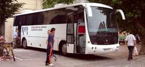 La unidad móvil de transfusión de Galicia estuvo ayer junto a la Plaza de Abastos. Las donaciones (663 durante el año pasado) se duplicaron desde 1996