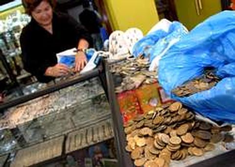 10 feb 2004 . Actualizado a las 06:00 h.Aínda que pareza mentira, a pesar de que xa levamos dous anos convivindo co euro, aínda son moitas as moedas vellas que andan perdidas polos recunchos máis insospeitados das nosas casas. Nos bares cóntanse as historias máis inverosímiles de cartos antigos que aparecen despois de buscalos durante moito tempo. Así circula o caso dun paisano da comarca que agochaba os aforros de toda unha vida metidos nunha lata, debaixo da caseta do can. O señor, a piques de morrer, confesoulle á familia onde estaban sete millóns das antigas pesetas. Con historias, entre o mito e a realidade, coma estas, son moitos os que se preguntan cantos cartos dos de antes andarán en paradoiro descoñecido. Quizais por eso, este mes a peseta volve a andar de moda polas rúas de Ordes. Dende a semana pasada setenta e dous establecementos do casco urbano admiten que as compras se paguen en euros ou nas moedas antigas. Unha vez que remate a campaña, os comerciantes terán que acudir ó Banco de España para cambiar as moedas que acumulen ata o vindeiro día 29. Alí as pesarán e as trocarán por euros, tal e como fixeron o mes pasado cos cartos recaudados en Ames.