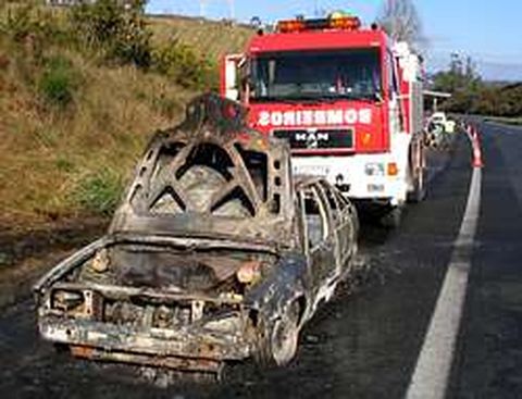 El parque comarcal de bomberos de Ordes extinguió ayer el incendio de un coche Citroën BX propiedad de un vecino de A Coruña, que resultó ileso, en plena autopista, en un tramo de Olas perteneciente al municipio de Mesía. Los bomberos tuvieron que utilizar agua y espumógeno tras el derrame de combustible, lo que provocó el siniestro total del vehículo. Pese a lo aparatoso y espectacular del incendio, no fue preciso el corte de tráfico de la autopista.