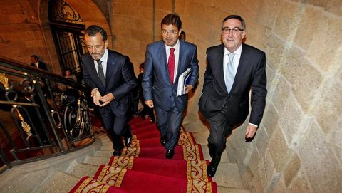 17 oct 2012 . Actualizado a las 07:00 h.Fomento, la Xunta y el Concello de Santiago pusieron ayer fin a sus disputas en torno al futuro de la futura estación intermodal surgidas antes de que también el ministerio estuviese gobernado por el PP. Las tres Administraciones inauguraron ayer con un rotundo acuerdo el grupo de trabajo creado para llevar a cabo el proyecto. Compostela tendrá una nueva estación de tren que dará servicio al AVE y que también incluirá en su recinto con la terminal de autobuses, pero el diseño del edificio se replanteará por completo porque el que estaba previsto inicialmente es «inviable», «irreal» y «virtual», calificativos en los que coincidieron ayer tras el encuentro mantenido en el Ayuntamiento tanto el alcalde, Ángel Currás, como el conselleiro de Medio Ambiente, Agustín Hernández, y el secretario de Estado de Infraestructuras, Rafael Catalá.