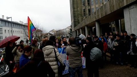 A las puertas del juzgado se concentró un grupo de personas, mayoritariamente del Foro Galego da Inmigración, que portaban pancartas con los lemas «Ser inmigrante no es delito»; «Todos con Laura» o «Ninguna persona es ilegal, fuera montajes»