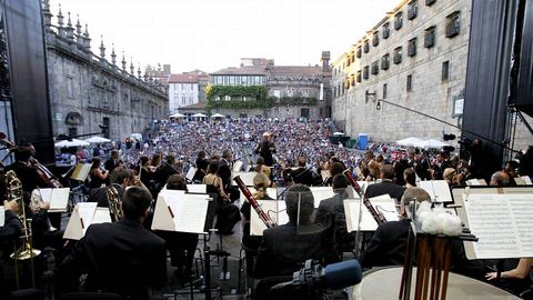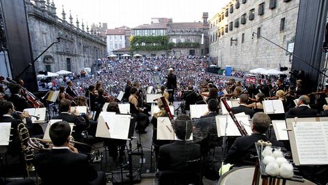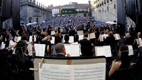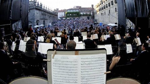 La versión clásica, ejecutada con la maestría que caracteriza a la Real Filharmonía en el concierto de entrada libre, arrancó los aplausos de una plaza entregada al recital lírico, que acompañó con palmas las partes más conocidas. Se trataba este del segundo recital de la orquesta en A Quintana dentro de las fiestas populares de Santiago. Hace dos años, en el 2012, la Real Filharmonía ya consiguió un apoteósico éxito. En aquella ocasión escogió también temas bastante reconocibles para animar a ese público que no forma parte de su parroquia habitual.