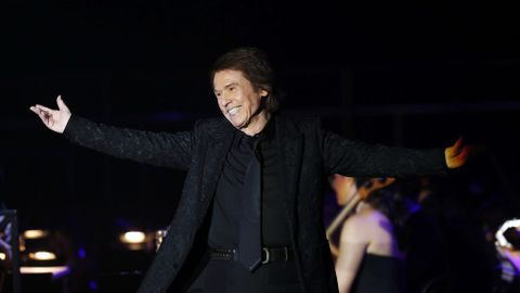 Raphael fue recibido en Santiago por un larguísimo aplauso del público, puesto en pie ya antes de que diera la primera nota, al que regaló para abrir boca su Ahora. Sin introducciones, ni presentaciones, fue hilando un tema tras otro con un torrente de voz nada mermado a sus 72 años.