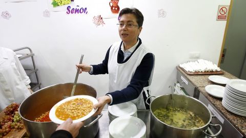 -Con el cambio hay gente desorientada. No saben si colaborar con nosotros en la rúa Travesa o en San Francisco. En estos momentos preferimos el dinero porque el espacio de almacenaje es más reducido. Además, compramos el producto que necesitamos, y si nos juntamos con muchas alubias o pasta, que nos da el banco de alimentos, debemos derivarlas. Sé que a algunas personas no les gusta dar dinero y, por ejemplo, siempre nos vienen bien aceite, azúcar o café. Y también fiambres y quesos porque se dan en el desayuno. El dinero hace falta para todo, agua, luz, personal. Pero la gente es muy muy generosa. He estado en otros sitios y con diferencia los vecinos de Santiago y alrededores son muy generosos y comprensivos con nuestros trabajo.