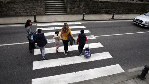 El siguiente punto de estudio es Virxe da Cerca, una de las calles en las que el Concello ya ha anunciado que mejorará la seguridad de los pasos de peatones. Ninguna medida podrá solucionar el auténtico problema: la letal combinación que producen despistes e imprudencias. Son las 17.36 horas y un Audi se salta el paso de peatones del convento de las Mercedarias en el que esperaba una señora con un niño. Es la hora de la salida de los colegios y un minuto después cruzan dos señoras con tres pequeños. Se aseguran antes de cruzar porque es un hecho que el peatón se vuelve más prudente cuando va acompañado por menores. A las 17.45 horas nosotros mismos somos casi atropellados por un Mercedes conducido por una señora que se salta el paso de peatones a la altura del colegio de los Remedios. El coche que sigue a la infractora nos pita haciéndonos saber que ha visto la escena. Lo conduce un veterano policía local ya jubilado: José Antonio Carril. Solo él parece haberse percatado de la peligrosidad de la situación.