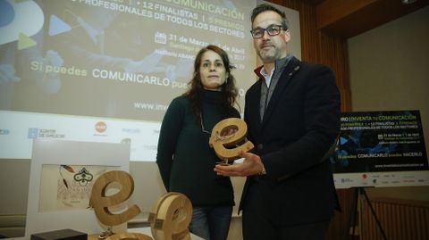 La encargada de realizar la escultura que se entregará a los ganadores fue Susi Gesto, orfebre compostelana que llevó a cabo un trabajo de artesanía en ebanistería y orfebrería. En forma de e, presenta un trazado de curvas, ya que encontrar la comunicación, sostiene la artista, implica explorar diferentes caminos.