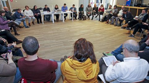 Santos compareció junto a uno de los considerados críticos, Pancho Casal, que dio por buenas las palabras de su compañera en el Parlamento, y el miembro de la ejecutiva nacional Pablo Fernández Alarcón, quien asistió al encuentro en calidad de invitado y que vio en él «madurez política». Fernández, uno de los hombres de confianza de Pablo Iglesias, interpretó que en la organización gallega hay «muchos malentendidos por cosas pequeñas» y vio voluntad de solucionarlos para «no pasar las reuniones discutiendo sobre unos artículos u otros».