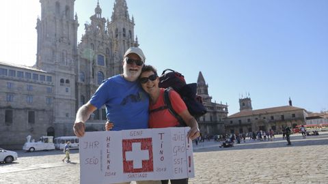 08 jul 2018 . Actualizado a las 05:00 h.Entre las gestas personales que consiguen los peregrinos que realizan el Camino de Santiago, ayer se cumplió la de Tino y Helena. La pareja de suizos recorrió más de 1.800 kilómetros desde Ginebra para llegar al Obradoiro. Al hacerlo, él arrojó al aire las botas que lo acompañaron estos días, cuyas suelas gastadas atestiguan el esfuerzo.
