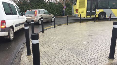 Aprovechando la reforma de aceras en el entorno del hospital, se colocaron también nuevos bolardos para dejar claro que las aceras no son plazas de aparcamiento. Pero los conductores ocupan cualquier hueco libre, y por ello los bolardos habría que colocarlos a lo largo de todas las aceras que rodean el hospital de Conxo. Solo así, los peatones podrán caminar con tranquilidad.