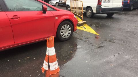 Durante la realización de este chequeo, entre las 10.30 y las 11.30 horas, se formó una larga cola de vehículos en la rúa Ángel Baltar, como consecuencia del taponamiento que se produjo en la entrada y salida de coches del área de aparcamiento del Banquete de Conxo. A ese espacio se accede y se sale por el mismo sitio. El problema es que solo cabe un coche, porque otros vehículos aparcan impidiendo la circulación en ambos sentidos. Por si fuera poco, la plaza reservada para la ambulancia del 061 delante de su oficina, junto a este aparcamiento, ciega la visibilidad a los que salen del párking. Como no podía ser de otra forma, la línea amarilla que impide aparcar delante del 061 es solo un adorno. Los coches ocupan la calle desde primera hora de la mañana.