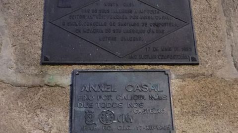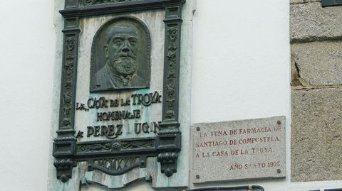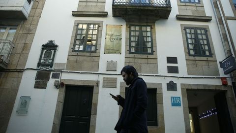 Tras hacer varias veces el recorrido por las principales calles de la zona monumental, un par de docenas de placas llaman especialmente la atención. La mayoría recuerdan la presencia de ilustres, pero unas pocas también traen a la memoria empresas centenarias. De entre todas ellas, una pequeña placa en la rúa Travesa revela que allí estuvo Helados La Montañesa, allá por 1949. Y el número 15 de la Rúa do Vilar acogió la imprenta editorial Nós, donde estuvo la casa de Ánxel Casal, el que fuera alcalde de Santiago, asesinado en los primeros días de la Guerra Civil. Dos placas evocan ambos hitos históricos. En la entrada del Franco, la Orquesta Compostela tiene su despacho, y una placa nos acerca a Manuel Muñiz, director de la formación y socio de honor de la Casa de Galicia.