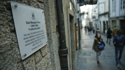 También en el Franco hay una placa en honor a Xosé Mosquera Pérez, «O vello dos contos», que residió en el número 38 de esa calle. Y en el 3 de esa misma rúa otra inscripción explica la historia de la fuente del Franco.
