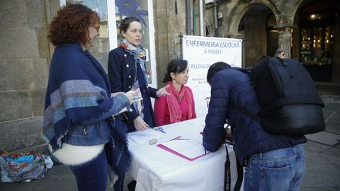 27 feb 2019 . Actualizado a las 13:14 h.Que los colegios con escolares que sufren enfermedades crónicas o tienen algunas alteración de la salud grave empiecen a implantar profesionales de enfermería, y continuar «de manera progresiva, paulatina y eficaz» por el resto: con ese objetivo se recogen firmas para presentar una iniciativa legislativa popular en el Parlamento de Galicia. Ya han superado el mínimo de rúbricas exigido para entregar la proposición en la Cámara, pero quieren ampliarlas lo máximo que puedan y aprovechar la campaña para explicarla a la población, afirma Maite Peña, ginecóloga del CHUS, quien ayer estaba en la mesa para recoger firmas en la praza do Toural. Hoy volverán de nuevo, en la praza Roxa, entre las 11.00 y las 20.00 horas.
