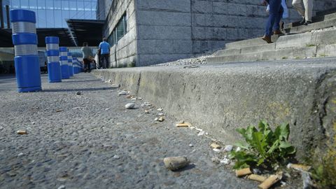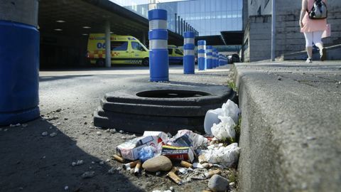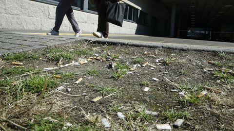 Pero pese a todos estos esfuerzos, en el entorno del hospital se sigue fumando. La explanada de la entrada principal, que además está protegida en caso de lluvia, y un espacio con bancos de piedra y madera al lado de la puerta de urgencias son dos de los puntos más elegidos por los adictos al tabaco. Y las colillas campan a sus anchas en muchos otros rincones del entorno sanitario.