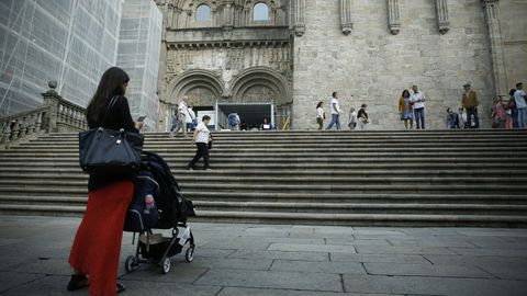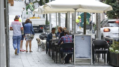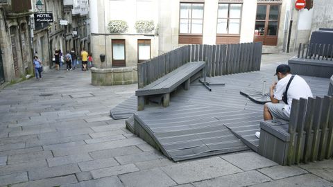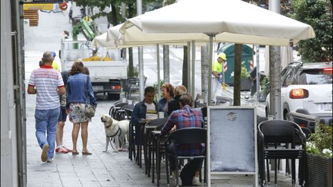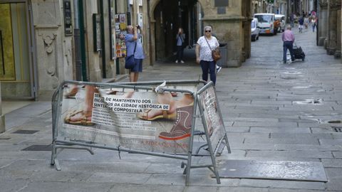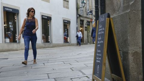 Estrechamientos y terrazas. Para que una silla de ruedas pase cómodamente por una acera, esta debe tener un ancho de al menos 1,20 metros, algo que, en ciertos casos, no ocurre. Además, las muchas terrazas que pueblan las calles de Santiago, no solo estrechan las aceras, también crean peligros a las personas con discapacidad visual, ya que no todos los locales sitúan sus mesas del mismo lado. Algunos las colocan bordeando la calzada y otros, pegadas a la fachada del establecimiento, de modo que causan confusión a los invidentes.