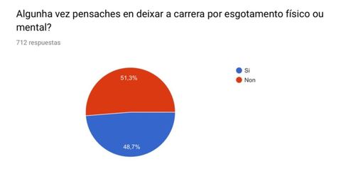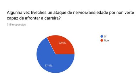 Lo explican desde la Asemblea Aberta de Medicina, el colectivo que ha puesto en marcha una protesta que ha cristalizado por una situación que se ha repetido «dende hai anos». Y han decidido apoyar sus reivindicaciones con datos. «Coa fin de amosar de xeito obxectivo a repercusión no alumnado de todos estes problemas, Asembea Aberta realizou unha equisa anónima» con una muestra de más de 700 estudiantes. Los datos son abrumadores. Casi la mitad del alumnado ha valorado en algún momento dejar la carrera por agotamiento, y casi 7 de cada diez dicen haber sufrido al menos un ataque de ansiedad desencadenado por los estudios.