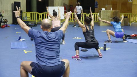 La amplitud de los espacios ha permitido redistribuir las zonas y se instalaron un total de 32 estaciones de limpieza. Hay parcelas marcadas en el suelo y las actividades dirigidas tan solo admiten veinticuatro personas en cada sesión, además de ser necesario hacer una reserva previamente. El aforo también está controlado en todo momento, y señalizado en una pantalla a la entrada, donde se toma la temperatura. Incluso utilizan el sistema de semáforo, que consiste en que los usuarios dan la vuelta al cartel de la máquina que han utilizado para que quede en rojo y el personal de limpieza sepa que debe desinfectarla. «O que esixe sanidade cumprímolo, pero tamén imos máis alá implantando outras medidas», concluye.