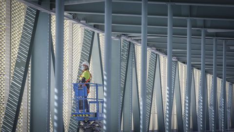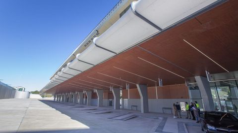 La terminal de autobuses, ya rematada, destaca por su luminosidad y limpieza constructiva