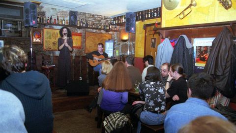 Al principio era eso, una taberna más que un pub en el que se podían degustar vinos de toda España, desde moscatel a los populares Málaga, siempre en barril. De ahí que Angie, como la conoce mucha gente, ceda elegantemente el puesto en la mesa de edad a sus vecinos. En realidad, la Borriquita se convirtió en pub en 1984, cuando el proyecto de Ramón perdió fuelle y este se planteó el cierre. Sus hijos le pidieron seguir a su estilo y él accedió con ilusión, pero dejó claro los límites: «Eu non quero problemas», les advirtió. Y no los tuvo, al contrario. Los hermanos le dieron una vuelta a todo y empezaron a poner música, sobre todo jazz, y la taberna se tornó en templo de la música de calidad en el que se empezaron a dar cita los mejores instrumentistas de Galicia. Primero para tomar cervezas y mojitos, y unos años más tarde, en los 90, para tocar en directo. «Foi o momento ideal. Aqueles anos foron estratosféricos, unha época dourada, e como non tiñamos a dependencia do turismo ata pechabamos en agosto para ir de vacacións», recuerda con nostalgia y una reflexionada preocupación por la deriva museística del casco histórico.