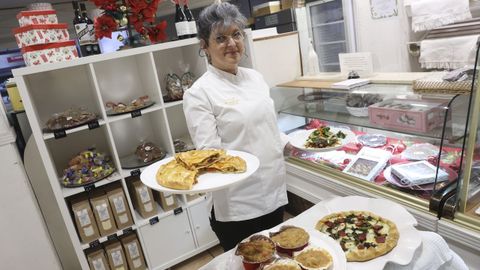 Chus Sande, del Obradoiro Artesanal, con locales en O Milladoiro y Santiago, incorpora a su oferta habitual de empanadas y empanadillas varios platos especiales de entrantes, pescados, carnes y postres, que los «clientes pueden combinar». Chus señala que las empanadas y empanadillas «tienen buena salida para la comida de Año Nuevo, cuando se quiera algo rápido para no cocinar ese día». Para el resto de las fiestas apuesta por «mantener algo de la tradición. El bacalao se prepara con coliflor y en papillote con verduras o con grelos, porque a la gente le gusta probar cosas nuevas». Las raciones de las carnes y pescados son a 16 euros; las empanadillas, a 6 la ración; y los postres, de 3,5 y 2,5 euros. Sande se inicia en el envío a domicilio con ObviousEat.
