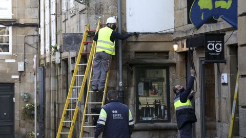 La instalación de fibra óptica en el casco viejo de Santiago entra en la fase final