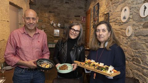 14 oct 2024 . Actualizado a las 08:20 h.En otoño los dueños del restaurante Langrina —Sesé Novelle y su marido Miguel Chapado, ambos en la cocina, y su hermana Sonia Novelle, quien atiende tras la barra— se reencuentran con muchos de sus clientes de Santiago. «O 90 % dos que comen asiduamente aquí son veciños. Estamos ademais nunha rúa moi compostelá...», pone en valor Miguel, mientras mira por la ventana del local que reabrieron en el 2022 en A Troia, en uno de los bajos que más brío dio a la calle. «Un día vimos que se alugaba e non dubidamos. Nós nunca viñéramos cando aínda era Bierzo Enxebre, pero o espazo, precioso, cativounos pola súa estrutura. A xente di que fomos valentes ao lanzarnos de novo, pero había que saír adiante. Temos dous nenos», razona, mientras entre todos recorren la evolución de un negocio que no deja de sumar adeptos.