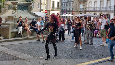 22 jun 2025 . Actualizado a las 04:55 h.Santiago celebró ayer la Gala do Orgullo en la plaza de Mazarelos en una cita en la que la música y la reivindicación fueron de la mano, con un puesto que recordaba las demandas del colectivo LGTBI+. Scarlatina Pier —en la imagen en la apertura de la cita— se encargó de presentar el evento en el que actuaron Catuxa Salom, Liteah, Yasmine Lutar, Amanda Carallo y DJ Saya.