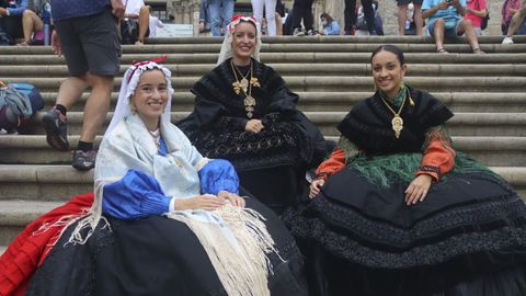 A partir de las 12.45 • Una de las citas más esperadas de las fiestas llega renovada. A diferencia de años anteriores, el desfile del Día do Traxe saldrá desde las siete puertas antiguas en dirección a la praza do Obradoiro. Le seguirá una misa en San Paio de Antealtares, a las 13.00, y una recepción en la casa del Concello, a las 14.00. Más adelante, a las 16.00, los participantes del certamen de trajes se reunirán en la hospedería de San Martiño Pinario. Posteriormente, a las 19.00, tendrá lugar propiamente el desfile de trajes tradicionales, que partirá de la hospedería hasta la praza da Quintana. Cuarenta y cinco minutos después se realizará la exhibición, el concurso de trajes y, finalmente, la entrega de diplomas.