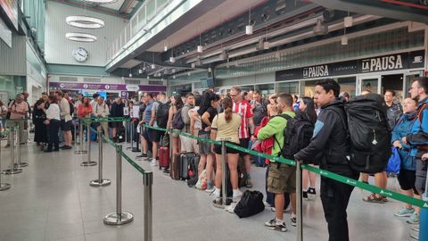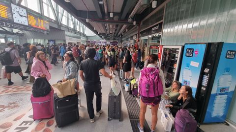 Esta mañana se fueron reubicando paulatinamente a los afectos por dicho corte de conexión entre Madrid y Galicia según las plazas disponibles y por orden de antigüedad del billete. Uno de los últimos anuncios de la reubicación se produjo cerca de las 11.20 horas, permitiéndose la entrada a los viajeros con billetes de ayer. Entre ellos, se encontraba Valeria Díaz, de México, con el billete de salida programado a las 20 horas del 13 de agosto en la mano. «Tuve que pasar la noche en un hostal y llegué esta misma mañana, ahora estoy esperando más información», relataba. Por su parte, Yago Lavandeira, natural de Santiago y con trabajo en Madrid, llegó a las 6.20 horas a la estación para embarcarse en el tren, pero en ese momento seguía sin recibir información. Joaquín Dubert pudo ver cómo sus hijas podían finalmente acceder al andén que les llevaría a su casa en Madrid, con los servicios de Renfe ya restablecidos. Después de la suspensión de su tren con salida a las 16.30 tuvieron que pasar la noche en Muros, donde estaban veraneando. «Nos llamaron desde Renfe para avisarnos de que nos hacían un cambio de billete a las 10.40 horas, pero no pudimos llegar a la estación hasta ahora», continúa. Sin embargo, cerca de las 11.25 horas recibió un mensaje de sus hijas, ya sentadas en los asientos del vagón, sobre un nuevo corte de la vía.