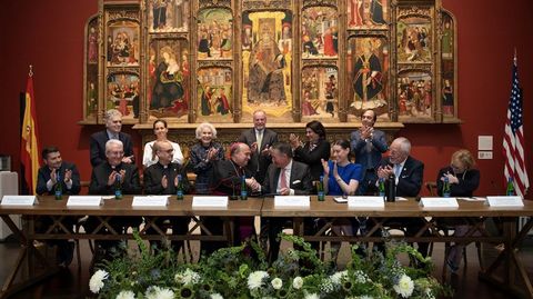 El acuerdo da continuación al firmado en la capital gallega el 25 de septiembre, que incluye también la edición de un libro, un simposio internacional y diversas presentaciones. Junto al arzobispo viajaron también a Dallas el deán de la Catedral, Manuel Jesús Formoso; el director de la Fundación Catedral, Daniel Lorenzo; y Ramón Yzquierdo, director técnico del Museo Catedral de Santiago.