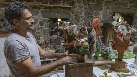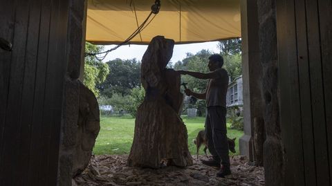 Entre tanto, convive con otros proyectos en su taller y avanza en este pequeño universo creativo y artesanal que tiene pegado a su vivienda: «Teño outro tronco dun roble americano que vai ser un músico e un par de pezas de modelado para fundir en bronce»
