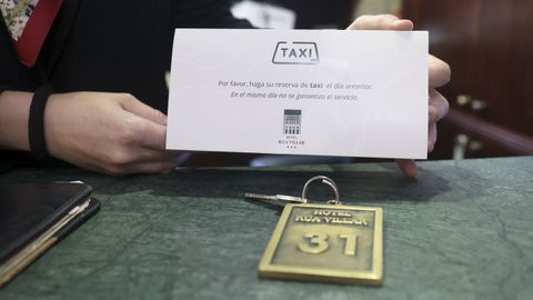 Carteles en las recepciones, mensajes en las habitaciones, llamadas la noche anterior al día de salida y avisos de palabra al registrarse. Así avisan a los huéspedes en los hoteles de Santiago sobre los problemas que pueden tener si dependen de un taxi para desplazarse por la ciudad o para subir a Lavacolla. «Solo es posible reservar un taxi si es para ir al aeropuerto. Para lo demás, hay que tener suerte», asegura Javier Torreiro, responsable del hotel Rúa Villar. «Incluso en el correo de confirmación de la reserva también se les explica la situación. Somos muchos los que advertimos a los clientes, porque la cara la ponemos nosotros», apostilla.