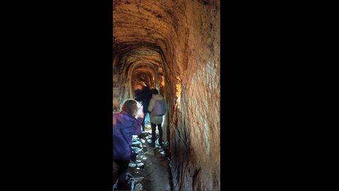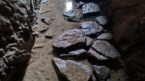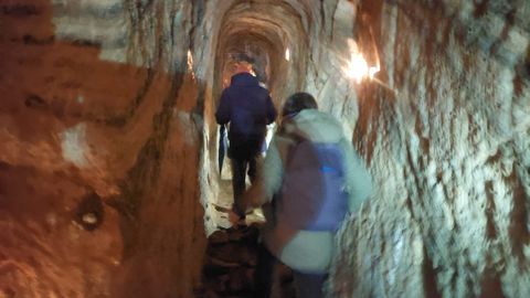 Los asistentes pueden entrar en una arqueta y descender hasta una gruta iluminada, en la que es una de las galerías de ampliación del manantial de Chan de Curros. «Probablemente era de orixe medieval, aínda que buscando máis caudal ou novas nacentes o orixinal foise ampliando», apunta el guía, mientras la visita recorre una galería que tiene, en su parte principal, 19,50 metros. El agua que está a los pies no desanima a ningún presente, agradecidos todos de poder visitar este patrimonio no tan conocido. «Cando comezamos as visitas era pouca xente a que entrara aquí antes», confirma el guía, mientras los asistentes, tras inmortalizar cada rincón, regresan al punto de partida del recorrido.