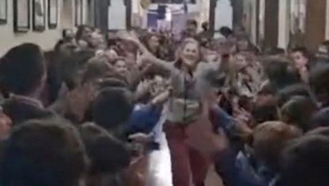 «Los alumnos se colocaron a lo largo de un largo pasillo encadenando vítores y un gran aplauso. A ella se la veía sobre todo feliz, chocando la mano con todos. Ya en la iglesia Encarna, y tras unas palabras nuestras, ella quiso dar las gracias por todo el cariño recibido. Fue muy bonito, sobre todo porque se la veía muy muy feliz», resalta la directora.