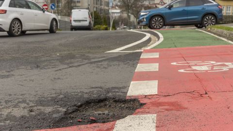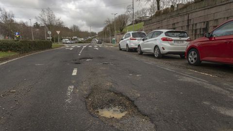 En la rúa Clara Campoamor, cientos de conductores lidian a diario con un bache en dirección salida y otro bajo la rotonda hacia Bernardo Barreiro de Vázquez Varela, esta última tapada hace un par de días. La lista, eterna, puede ser completada por cada compostelano.