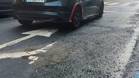En la lista de los baches no hay muchas novedades, y están repartidos por toda la ciudad. Afectan tanto a vías principales con gran intensidad de tráfico como a otras secundarias con menor circulación. En realidad son los mismos de siempre, que salen una y otra vez porque las reparaciones ejecutadas no parecen ser las adecuadas. En el Ensanche, los vecinos de la rúa República de Arxentina sufren desde hace meses un bache de gran tamaño que cruza la calzada de un lado a otro, pero en otras calles como San Pedro de Mezonzo, Alfredo Brañas, Xeneral Pardiñas , O Hórreo —frente a la Intermodal— o en Montero Ríos no se libran del fenómeno fochanca. Tampoco era fácil evitar caer en los baches de las rúas Londres y Roma, que también fueron provisionalmente tapados en la pequeña tregua del viernes.