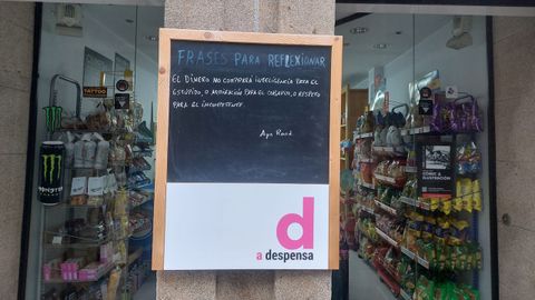 09 feb 2026 . Actualizado a las 13:30 h.Desde el 2022 una de las primeras tareas de Carlos, al frente de A Despensa —una tienda de productos de alimentación, hogar, bebidas frías y comida para llevar situada en la rúa de San Pedro, en Santiago—, es, además de abrir el establecimiento, cambiar la frase escrita en una pizarra de su exterior. «La escribo a diario. Como explico en la pizarra son ''Frases para reflexionar''», apunta Carlos, evocando cómo fue el intento de hacer pensar a la gente y de dar también una mayor visibilidad al negocio lo que empujó a llevar adelante la iniciativa.